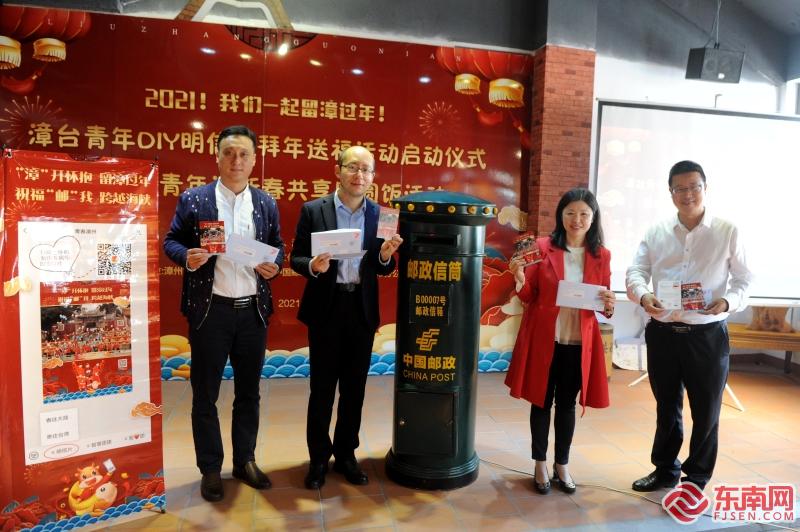 DIY明信片拜年送福活动正式启动 在漳州市海峡两岸茶文化交流中心,DIY明信片拜年送福活动正式启动。漳台青年在明信片上写上新年祝福寄语,寄往海峡彼岸。随后,漳台青年同包团圆饺,同品漳州小吃,其乐融融共享团圆饭,互道新春祝福。
