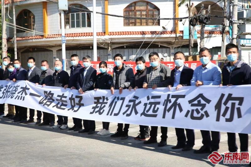 灵车驶过时,所有消防车辆鸣警报,社会各界人士、漳州消防指战员代表纷纷敬礼迎接,现场肃穆庄严。沿途4个乡镇群众自发到路口送张晓杰烈士最后一程。