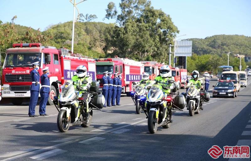 漳州诏安县社会群众、漳州消防救援支队指战员代表在诏安东高速路口迎接消防英雄张晓杰烈士回家。他们怀着对张晓杰烈士的深深敬佩和惋惜之情,或手握菊花,或拉着一条条写着“烈火英雄魂归故里 诏安人民迎接张晓杰烈士回家”、“张晓杰烈士永垂不朽”、“英雄张晓杰一路走好我们永远怀念你”等横幅送别烈士。