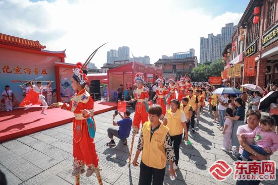 踩高跷表演(郑文典/摄) 活动中,市民不仅可以现场观看闽南传统龙狮表演,闽南语、潮剧戏歌表演唱,非遗文艺表演等精彩演出,欣赏漳州非物质文化遗产传承人带来的芗剧折子戏、锦歌、古傩、何阳拳、踩高跷、大鼓凉伞等6个非遗传统技艺展演,品尝黄金兴、东美糕、白皮饼、白水贡糖、长泰明姜、仙草、闽南土笋冻等非遗美食,还可以近距离感受、体验灯谜会猜、木版年画、剪纸、剪瓷雕、长泰竹编技艺、彩扎技艺、漳绣技艺、素三彩等8个非遗技艺项目的独特魅力。