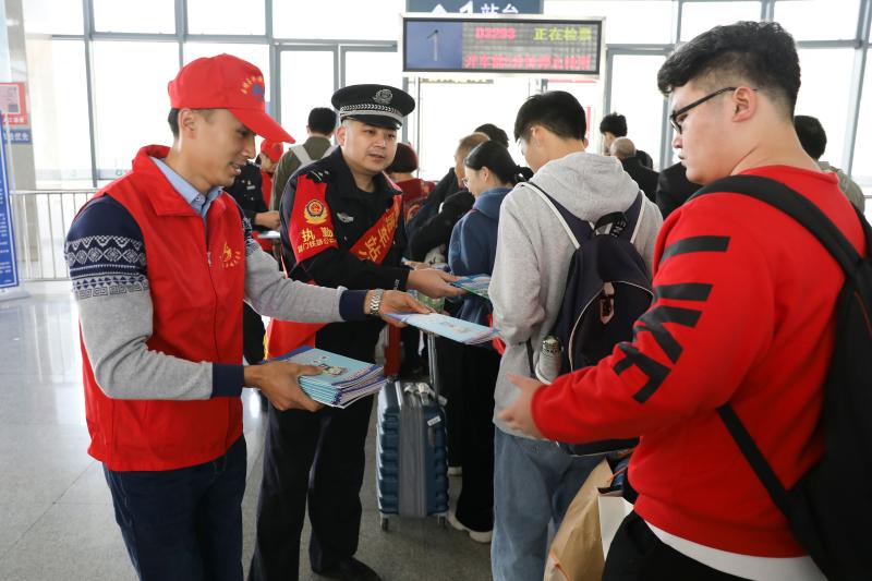 1月9日上午,南靖团县委联合丰田镇、南靖车站公安派出所、丰田镇派出所、丰田镇司法所、南靖县护路办到南靖动车站,开展青年志愿者服务春运“暖冬行动”和综治平安建设“七合一”主题宣传活动。 活动中,青年志愿者为车站旅客提供出行引导、困难帮扶,开展铁路安全、扫黑除恶、打击电信诈骗等政策法规宣传。当天,青年志愿者还到丰田华侨中学,引导学生参观青少年铁路护路宣传教育基地,对学生们进行铁路安全专题教育。(张梦帆 谢威 文/图) |