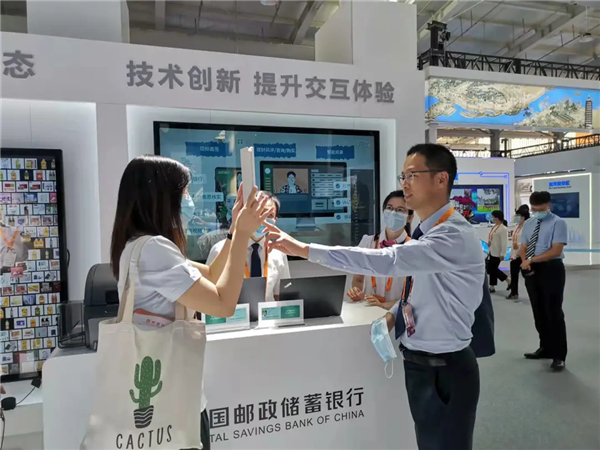 科技绘就交互体验“生态链” 充满“科技范儿”的沉浸式金融体验,可谓此次邮储银行展区带给参观者的最强感受。展厅的电子屏幕上,“相约服贸会 YOU你更精彩”的标语十分醒目。“YOU商街”小程序是邮储银行北京分行推出的本地化“泛生活圈”服务平台,用户可通过“YOU商街”小程序领取邮储银行众多商家优质优惠券,体验吃喝玩乐一站式优惠服务。而商家也可通过“YOU商街商户端”,依托邮储银行网点多、渠道广的优势,进行高效线上获客和营销。 在“科技赋能 打造金融生态”板块,邮储银行北京分行展示了“金融+生活”生态圈建设中的重要成果。通过“邮储食堂”现场互动体验屏,参观者可以现场体验“邮储食堂”,进行购物。以“邮储食堂”为着力点,邮储银行探索生态场景,积极发展线上服务,通过智能技术应用、内部渠道整合、推动外部合作等方式,积极构建“金融+服务”的智慧生态圈,实现特色金融生态价值创造。现场的互动体验屏采取了体感雷达技术,当参观者靠近屏幕时,屏幕中央会浮现互动按钮,通过点击、触摸电子屏,可以现场了解“邮储食堂”热门商品,成为“邮储食堂”会员后即可享受20多万种商品低价直供及增值服务的权益。 科技加持的金融服务体验设备是本次服贸会邮储银行展厅的一大亮点。在“技术创新 提升交互体验”板块,邮储银行北京分行打造了“视频移动营业厅”,通过联网核查、OCR识别(光学字符识别)、远程音视频技术等前沿科技手段,采取线上音视频连接模式,可以为客户提供非接触式远程银行服务,足不出户即可办理金融业务。“视频移动营业厅”打破了线下业务空间局限,通过模拟线下业务办理场景,实现“随时、随地”为客户提供有温度的金融服务。目前,邮储银行北京分行已将“视频移动营业厅”技术应用到财富中心建设中,搭建起财富顾问远程交互系统。后台财富顾问通过线上音视频连接、交互的方式,远程支撑前台理财经理陪访财富客户,很大程度上缩短客户服务管理链条,客户可以享受更高效的资产配置服务和“1+1+N”的升级服务体验。 除此之外,展厅中还能看到邮储银行多项智能互动体验设备。现场为参观者提供“服贸会纪念卡”个性化定制服务,是邮储银行“个性化制卡”服务的一种方式,也是在新兴技术与传统业务融合上的创新尝试。参观者通过小程序上传个性化照片,短短几分钟,就能拿到一张定制的“服贸会纪念卡”,卡面颜色丰富、色彩明艳、画质清晰。“个性化制卡”服务采用了先进的图片识别处理技术、加密算法技术、再转印及双面打印技术等,可以满足客户对卡面的个性化定制需求,同时支持在智能卡等不平整的证卡表面打印。