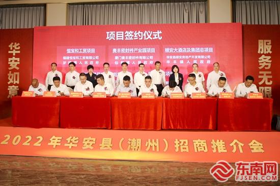 推介会现场签约项目19个,总投资70.5亿元。 黄建和摄 东南网漳州5月9日讯(通讯员 陈国霆 黄建和 文/图)5月7日下午,华安县在广东省潮州市举办“华安如意·服务无限”2022年华安县(潮州)招商推介会,向省内外企业家推介华安县的特色产业和重点项目,展示全县招商引资的优质营商环境和资源优势。 在招商推介环节,现场观看华安经济开发区宣传片及招商推介,华安经济开发区具有独特的区位优势,到漳州市区仅15分钟、到厦门特区仅30分钟,规划建设轻轨路网和厦漳泉同城化快速通道直通园区,满足“半小时经济圈”的构成条件,是承接厦漳泉、长三角和珠三角产业转移的“天然窗口”。华安大力推进“放管服”改革,在全市县管开发区中率先设立便企服务中心和“安园护企办”,推出每月书记县长办公日和每周局长服务日,全面推行乡镇党政主要领导开发区服务企业报到制和服务企业特派员制度,为企业提供“妈妈式”服务。现场进行华安县全域旅游推介,华安是国家重点生态功能区、全域国家森林公园和全国重点产茶县、省级全域生态旅游示范县,森林覆盖率达72.33%,大气环境优于国家一级标准,水质达国家一类标准,有世界文化遗产大地土楼群,海丝印记明清古窑址东溪窑,还有风情独特的高山族、畲族少数民族文化。 招商推介会上还举行签约仪式,漳州市工商联与潮州市工商联签约友好商会并互赠礼品;华安商会与饶平商会签约友好商会;现场举行项目签约仪式;华安县与中国农业发展银行漳州市分行签约授信100亿元。 此次大会现场签约19个,总投资70.5亿元,其中10亿元以上项目4个,总投资44.75亿元;工业项目16个,总投资51.35亿元;文体旅项目1个,总投资3亿元;农业项目1个,总投资6亿元;建筑业项目1个,总投资10.15亿元。 华安县委书记叶毓,县政府县长陈敏杰,潮州市工商联主席李立勉,潮州市工商联党组书记陈素玉,潮州市工商联专职副主席兼秘书长陈瑞苑,饶平县工商联党组书记吴继祖,漳州市工商联主席、总商会会长杨龙辉,漳州市委统战部副部长、市工商联党组书记王金狮,中国农业发展银行漳州分行党委书记、行长郑旗锋,漳州市工商联副主席吴文群,漳州市工信局党组成员、三级调研员黄辉,漳州市商务局三级调研员林水福,以及各企业家嘉宾代表参加推介会。 叶毓在招商推介会致辞中表示,近年来,在历届县委、县政府接续努力下,在16万华安人民携手耕耘中,走出了一条山区小县特色发展之路。去年全县的GDP是190.74亿元,增长8.1%,增幅居漳州第三,人均GDP14.2万元,居福建省前列。如今的华安,已成为闽粤创新创业的一片热土。致力于把华安打造成福建展示生态文明的重要窗口和知名生态休闲康养、特色乡村旅游目的地,共同实现生态和工业两极共荣、乡村振兴和全域旅游两翼齐飞。 陈敏杰在晚宴致辞中表示,期盼借助这次招商推介会的举行,促进各界朋友参与和支持华安的发展。期盼借助各位企业家朋友联系广泛、信息灵通的优势,帮助推介华安、宣传华安,介绍更多的客商到华安投资兴业。 招商推介会前,县领导还开展会见座谈,希望通过本次招商推介会让更多的有识之士走进华安、了解华安、爱上华安,来华安投资兴业、共襄盛举。 |