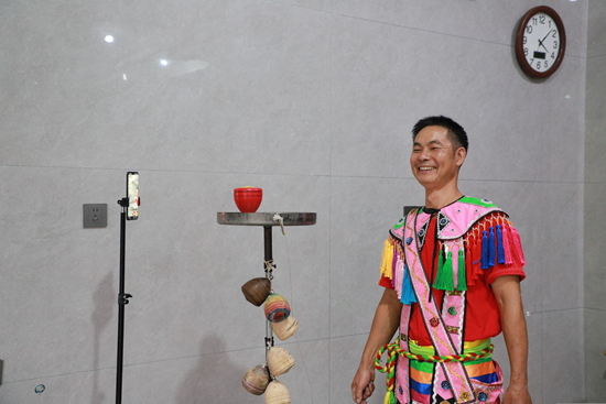 回到华安的陈艺强发现本地玩陀螺的人寥寥无几,只能自己摸索练习。然而精通之路并无捷径,为练好抛陀螺,他付出了旁人难以想象的努力。日复一日地刻苦训练,他磨平了几十根陀螺铁芯,终于掌握了精准抛投的诀窍。 但他并不满足于仅仅让陀螺平稳旋转,而是不断挑战更高难度的技巧。经过多年的不懈练习,他已能将陀螺精准地抛入瓶盖大小的托盘中旋转不坠;能将陀螺抛上瓷碗碗底而不使瓷碗碎裂;能引导陀螺在纤细的钢丝上稳步前行,如履平地;他甚至还能将陀螺稳稳抛上4.5米高的台子。 每当完成一次这样高难度的展示,他的脸上总是洋溢着自豪骄傲的笑容,“别人做不到的事,我做到了,这让我特别开心。我敢说,练成我这样的没有几个。”这份骄傲并非源于单纯的炫技,而是源于通过苦练,将抛陀螺技艺推向新高度,并为观众演示的成就感。 他还积极参与各类民族传统体育赛事,屡获佳绩,曾赴广州、贵州、台湾等多地表演,累计获奖二十多项,让高山族陀螺在更广阔的舞台上闪耀光芒。 陈艺强逐渐不再满足于只在表演台上向观众展示,2019年他注意到了抖音兴起,却发现平台上没有什么关于高山族抛陀螺的内容。于是他抓住机会,主动拥抱新媒体,利用平台开启了自己的直播表演。 “直播间人多的时候能达到一千多人,视频播放量也有达到上千万的,证明还是有很多人支持我们高山族抛陀螺。”陈艺强言语中很是喜悦,“平台给了民间艺人不花一分钱也可以展示风采的机会。” 每一次直播,都是一次成功的文化普及。至今为止,陈艺强的“福建陀螺哥”账号已经吸引了近三十万粉丝的关注,越来越多的人开始领略到高山族陀螺的独特魅力,并对此产生了浓厚的兴趣,纷纷联系陈艺强购买陀螺以练习。这不仅为陈艺强带来了经济上的收益,更重要的是,它使得高山族的传统文化技艺得以走进普通家庭,促进了文化的生动传承。 陈艺强目前在家中经营着一家摩托车修理店,闲暇之余便练习抛陀螺,他的家成了村里的“文化地标”,时常有同村的孩子们被奇妙的陀螺吸引,总爱聚在他家尝试练习。对于孩子们的好奇摸索,他从来不阻止,还会从旁指点。陀螺落在托盘上旋转的振鸣声与孩子们的欢声笑语交织在一起,在他看来,这正是文化血脉延续的最好证明。 陈艺强以其精湛的技艺、开放的胸怀和坚定的使命感成功为高山族抛陀螺传统技艺注入了新的生命力。他不仅是一位技艺的保存者,更是一位文化的传播者。正如那在托盘上旋转的陀螺,高山族的这份文化瑰宝,必将薪火相传,生生不息。(汤平 王 玉林 文/图) |