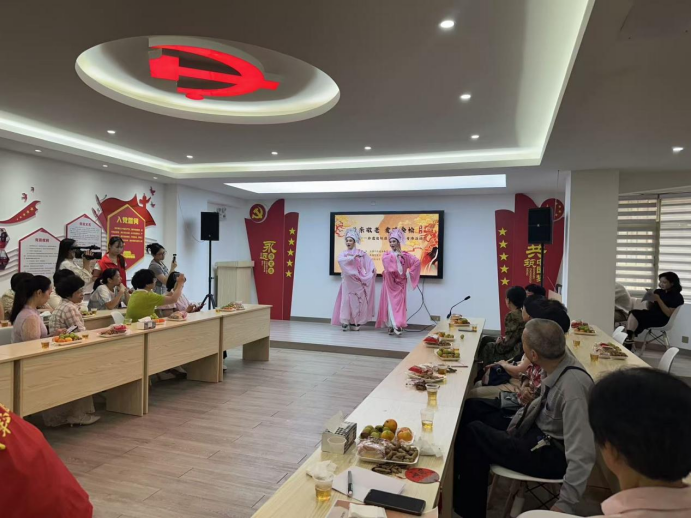 歌仔戏《十八相送》 岁岁重阳,今又重阳。10月27日,芗城区东铺头街道联合漳州市艺术馆,在水仙花社区党群服务中心(社区文化站)举办2025年重阳节退休干部主题活动。40位街道退休干部齐聚一堂,在非遗雅韵中感受传统佳节氛围,在温情互动中共话街道发展,度过了一段意义非凡的时光。