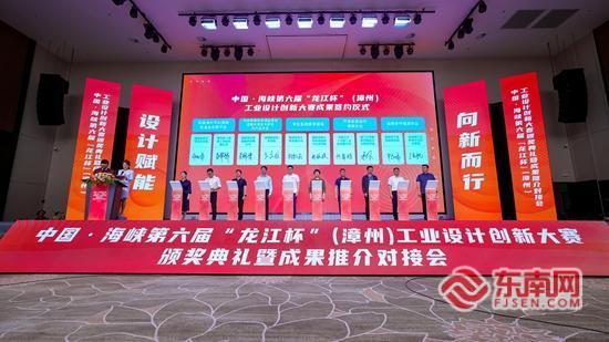 颁奖典礼现场 东南网漳州11月5日讯(本网记者 陈惠华 通讯员 方艺玲 文/图)11月4日上午,中国·海峡第六届“龙江杯”(漳州)工业设计创新大赛颁奖典礼暨成果推介对接会在漳州高新区举办。 本届大赛由福建省工业和信息化厅、漳州市人民政府联合主办,漳州市工业和信息化局、漳州市科学技术局、漳州高新区管委会共同承办。大赛以“设计赋能 向新而行”为主题,设立综合赛以及命题赛两个赛事,综合赛共产生特别奖2个,金奖7个,银奖18个,铜奖45个,优秀奖69个;命题赛共产生金奖5个,银奖11个,铜奖18个,优秀奖38个。活动现场对获奖代表进行颁奖,10个产学研项目现场签约,同时组建4支工业设计服务小分队。