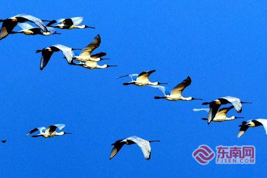 排成人字形飞行的黑脸琵鹭 近日,位于云霄县的漳江口红树林国家级自然保护区迎来了今年入秋以来首批越冬的国家一级保护动物黑脸琵鹭。 保护区工作人员与观鸟爱好者在开展越冬水鸟监测时发现,20余只黑脸琵鹭顺利飞抵这里、展翅翱翔,这标志着漳江口红树林保护区新一轮候鸟迁徙季正式开启。 作为全球濒危的国家一级保护动物,黑脸琵鹭对栖息地环境有着极高要求,它们的到来是对漳江口生态环境不断改善的无声认可。保护区茂密的红树林群落、广阔的湿地滩涂,以及丰富的鱼虾蟹贝等天然饵料,成为它们连续多年选择越冬的安心家园。 漳江口红树林保护区作为东亚-澳大利西亚迁飞路线上的重要“中转站”和“加油站”,近年来通过退养还湿、有害生物除治等生态保护举措,让候鸟越冬环境持续优化,黑脸琵鹭数量也呈稳步增长态势。随着迁徙季渐入佳境,更多候鸟将陆续抵达,这片“鸟类天堂”即将上演万鸟齐飞的壮观景象。(漳江口红树林国家级自然保护区管理局) |
