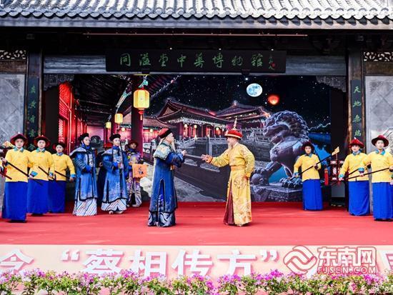 芗剧折子戏《蔡相传方》(主办方供图) 活动在《蔡相传方》纪录片中拉开帷幕,镜头回溯到240年前,蔡新以御赐银丝嵌花檀木托盘为信,将“延寿丹”“金凤丸”两副御方托付给何秉杏,开启了同溢堂九代传承的篇章。漳浦县竹马戏(芗剧)非遗传承保护中心的艺术家们,用芗剧折子戏《蔡相传方》,重现当年蔡新传方的经典场景。