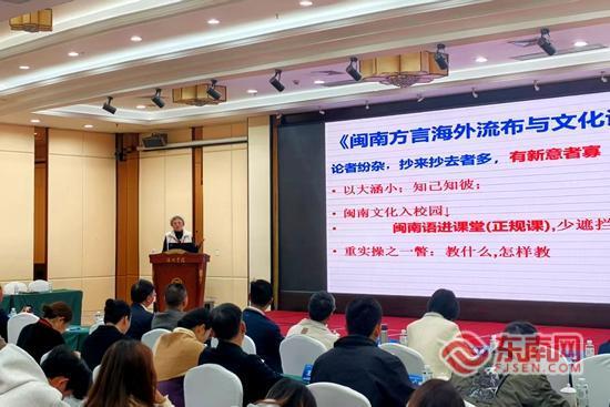东南网漳州12月13日讯(本网记者 沈文栋 文/图)一方水土孕育一方文化。12月13日,一场聚焦闽南文化创新发展的学术交流盛会——世界闽南文化创新发展研讨会在漳州宾馆举行,来自各界的专家学者齐聚一堂,共商闽南文化在全球语境下的创新发展,构建闽南文化可持续发展的新生态。 本次研讨会以“融合·共创:构建世界闽南文化可持续发展新生态”为主题,聚焦闽南文化的海外传播、方言认同、工艺美术创新、建筑技术交流等核心议题开展培训研讨。会上,闽南师范大学研究员张嘉星以《闽南方言海外分布与文化认同之我见》为题,揭开闽南话在全球华人社区中的情感纽带与文化密码;闽南师范大学教授沈毅玲深入剖析《闽南文化的海外传播:多元路径与全球影响》,探讨从民间信仰到现代媒体,闽南文化如何走向世界;福建省闽南文化研究会高级指导涂志伟则带来《闽南与欧洲红砖建筑技术的交流与外移》的分享,从建筑史的维度呈现一场跨越大陆的文化技术对话。