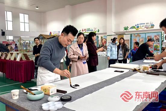 东南网漳州12月20日讯(本网记者 沈文栋 文/图)丹青溢彩抒时代豪情,翰墨流芳颂盛世华章。12月19日下午,漳州台商投资区金山中心小学艺体馆内,缕缕墨香与非遗魅力交织萦绕,福建省第三届“百年追梦”少儿书法百幅精品展巡展暨“笃行全会精神 墨韵追梦童心”师生艺术作品展在此正式启幕。 活动开篇,伴随着富有节奏的锣鼓声,闽南龙狮表演瞬间点燃现场氛围。随后,书法精品巡展、非遗技艺展示、名家书画笔会、书法学术讲座、经典图书分享等五大亮点环节依次铺陈开来。 书法,是中华优秀传统文化中一颗璀璨夺目的明珠,承载着千年赓续的民族文脉与精神底蕴。本次展览创新性地将全省少儿书法精品巡展与金山中心小学师生艺术创作相融合,既是对书法艺术的传承与弘扬,更是该校深耕“以美育人、以文化人”理念,在孩子们心中播撒文化自信种子的生动实践。