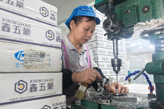 福建新梦智能家居有限公司新建厂房内,机器设备正在有条不紊地运转着。郑晓梅摄 当一家龙头企业落地生根,会激发怎样的连锁反应? 日前,笔者驱车来到漳州市长泰经济开发区银塘工业园区,只见漳州鑫五豪科技有限公司的生产线正繁忙运转,为几公里外的“老搭档”漳州松霖智能家居有限公司赶制卫浴五金件。 “这在两年前,是我们都不可想象的‘高效’。”漳州鑫五豪科技有限公司行政总监张碧南坦言。鑫五豪是松霖的主要配套企业,长期为其提供关键的卫浴龙头、淋浴花洒及各类五金件。然而在过去,两家企业“隔城相望”,相距30多公里,光是送一趟货就得花费不少时间。
