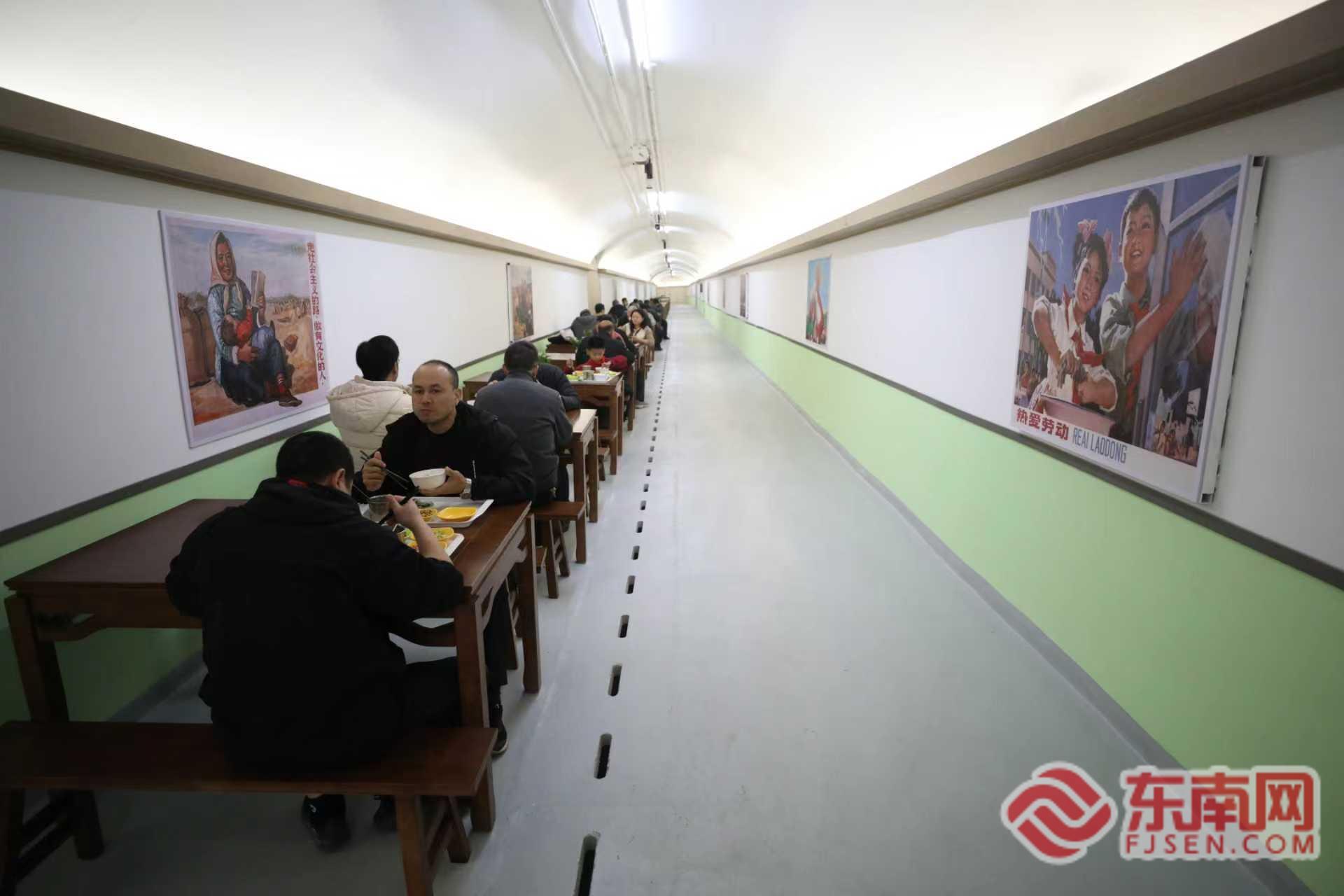 东南网漳州1月19日讯(卢丽娟 通讯员 刘钦赐 郑文典 文/图)近日,位于芗城区大通北路51-16号的芗城教投社区食堂防空洞店重新装修开业了。在现场记者观察到,洞内用餐设施重新装修,桌椅全部更换,防空洞内堂食区约400㎡,两侧贴满经典红色宣传作品,洞内设有36个桌位,可同时容纳150名人员就餐。厨房操作间约200㎡,同时配备1个电动车临时停车场,场地可容纳100辆电动车停放。