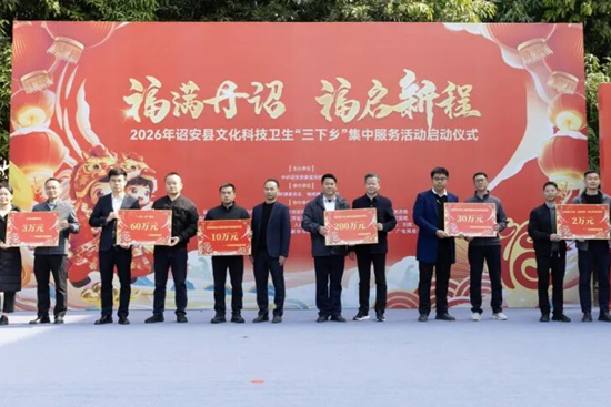 启动仪式上,陈三武与相关负责人共同上台启动2026年诏安县“三下乡”集中服务活动,标志着为期一年的文化、科技、卫生资源下沉基层行动正式拉开帷幕。现场还同步举行了惠农项目捐助仪式,县委宣传部、县委政法委、县教育局、县财政局等16家捐助单位,向梅岭镇捐赠项目资金共计601.7万元,为当地实现“农业增效、农民增收、农村增彩”筑牢坚实保障。