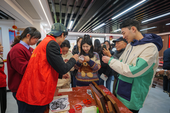 来自木版年画非遗传承人颜朝俊工作室的传承人们现场指导群众拓印年画,民俗韵味承载着满满的新春祝福。漳浦剪纸非遗传承人黄际宇现场执剪创作,指尖翻飞间,将同心迎新春的美好祝福揉进方寸红纸间。芗城区自媒体联盟会员们全程记录活动盛况,通过短视频、图文报道等新媒体形式让“统战温度”触达更多群众。 本次活动以传统节庆为纽带,以文化传承为载体,进一步凝聚共识,画好最大同心圆。下一步,芗城区统一战线将持续发挥法宝作用,凝心聚力为芗城高质量发展作出更大贡献。 本次活动由中共芗城区委统战部、区工商联、区文联、通北街道联合主办,区新联会、区书法家协会承办,区各民主党派、区知联会、区台联、区自媒体联盟、通北街道团结社区、木版年画非遗传承人颜朝俊工作室、黄际宇剪纸艺术工作室协办。(林桂芬 曾晨/文 芗城区新联会/图) |