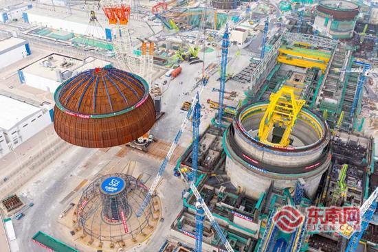 漳州核电3号机组内穹顶正在吊装中 东南网漳州2月4日讯(钟舒云 通讯员 刘喜阳)2月4日,“国家名片”华龙一号批量化建设再传喜讯,漳州核电3号机组内穹顶顺利吊装成功。该机组是我国“十五五”期间首台完成内穹顶吊装的核电机组,标志着其已从土建施工全面转入设备安装阶段,为后续安装调试及并网发电奠定了坚实基础,实现了漳州核电二期工程新年“开门红”。 内穹顶吊装是华龙一号核电工程建设的重要里程碑。内穹顶位于核岛顶部,主要功能是保证反应堆厂房的完整性和密封性。安装当天,风速测量符合标准后,3200吨履带式吊车缓缓将370余吨重的内穹顶吊离地面,经过变幅、升钩、行走平移、调整等一系列高精度动作,内穹顶稳稳落在反应堆厂房内层安全壳筒体上。 随着吊装完成,春节也即将来临。为了保证施工计划有效推进,漳州核电项目建设团队将组织管理人员和产业工人坚守岗位,确保工程建设安全有序推进。同时开展一系列春节活动,让坚守岗位的工人安心、暖心过年。