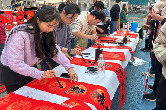 神驹献瑞,非遗贺岁。2月4日下午,改造一新的芗城区东铺头街道龙江社区高信花园小区广场上鼓乐声声、年味浓浓。该活动由东铺头街道党工委、办事处联合芗城区统战系统党总支、漳州市艺术馆党支部、区文学艺术界联合会主办,东铺头街道龙江社区党总支、区书法家协会、漳州八宝印泥有限公司、木版年画非遗传承人颜朝俊工作室、闽南木刻大漆吴仔新工作室等单位协办的“非遗迎新春・文化进社区”2026年非遗新春文化惠民活动在此热闹启幕。 活动现场,舞台区域率先拉开精彩序幕,三台特色节目轮番登场,让观众沉浸式感受传统艺术的独特韵味。木偶表演《人偶同台》将传统木偶戏的灵动与趣味展现得淋漓尽致,艺人指尖轻捻提线,木偶便做出翻、转、跳等一系列精巧动作,时而与台下观众俏皮互动,憨态可掬的模样引得大人小孩阵阵欢呼;锦歌表演唱《漳州小吃真正港》用地道的闽南腔调,将卤面、生烫、麻糍等漳州特色小吃的鲜香滋味唱进人心,浓郁的乡土气息扑面而来;古筝独奏《桃花源》音色清越,意境悠远,清雅的琴声流淌在广场上空,让现场观众在丝竹之音中领略古典艺术的雅致意境。