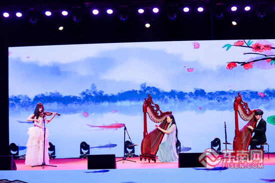 箜篌与小提琴二重奏《望春风》 省文联选送的节目精彩纷呈,男声独唱《领航》以激昂的旋律唱响时代强音;杂技《和韵——双人技巧》展现了力量与美感的完美结合;芗剧《一代相国蔡新》片段让观众领略了本地历史名人的风采;高山族舞蹈《我们都是一家人》用充满活力的舞姿描绘了民族团结的生动画面。市文联选送的箜篌与小提琴二重奏《望春风》、群舞《厝里绣艺》等节目,也以中西合璧的艺术形式和浓郁的地域特色赢得了观众的热烈掌声。