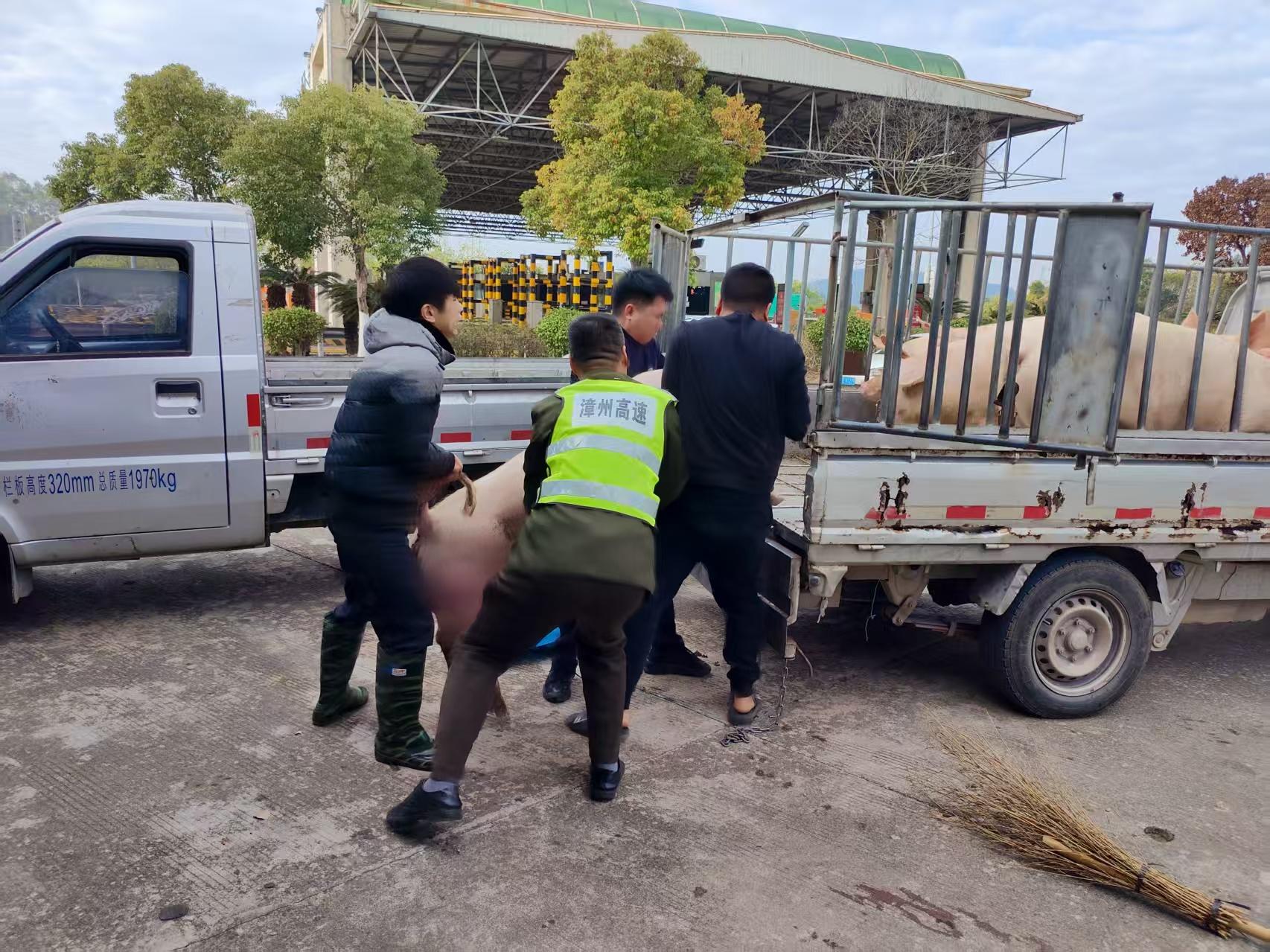 “多亏了你们帮忙,不然这两头猪跑到路上,后果我真不敢想!”货车司机紧紧握着收费站班长小许的手,连连道谢。这紧张又暖心的一幕,近日发生在漳州高速诏安东收费站出口。 2月4日上午,一辆运输活猪的货车在驶离收费站时,因车厢门栓意外松动,两头小猪突然跳车“出逃”,在车流旁四处乱窜,不仅影响交通,更存在严重安全隐患。刚完成前一辆鲜果车检查工作的当班班长小许见状,立即上前处置,并同步通知驻点高速执法中队人员。