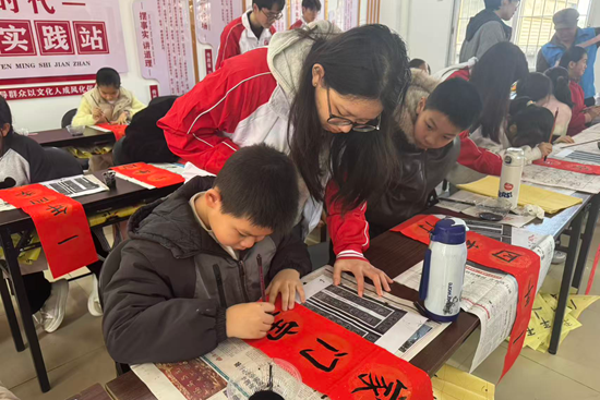 课堂上,书法老师从握笔姿势、运笔技巧讲起,细致示范横、竖、撇、捺的书写要领,用通俗讲解把抽象笔法变得直观易懂。大学生志愿者分组辅导,手把手纠正姿势、鼓励学生大胆落笔,分享书法与春联里的文化故事。孩子们端坐案前,凝神运笔,从基础笔画到吉祥“福”字,再到简单春联词句,一笔一画认真练习。稚嫩的笔触、专注的神情,与满室墨香相映成趣,完成作品的孩童脸上洋溢着自豪与喜悦。 此次公益书法班吸引50多名儿童参与,既丰富了孩子们的寒假生活,普及了书法知识,也让中华优秀传统文化在乡村落地生根,生动践行“授人以鱼不如授人以渔”的志愿服务理念。协会负责人表示,将持续倾听群众心声,聚焦乡村青少年成长需求,推出更多精准化、常态化公益文化活动,以文化赋能乡村振兴,让爱心与墨香持续温暖乡村每个角落。(杨福英 文/图) |