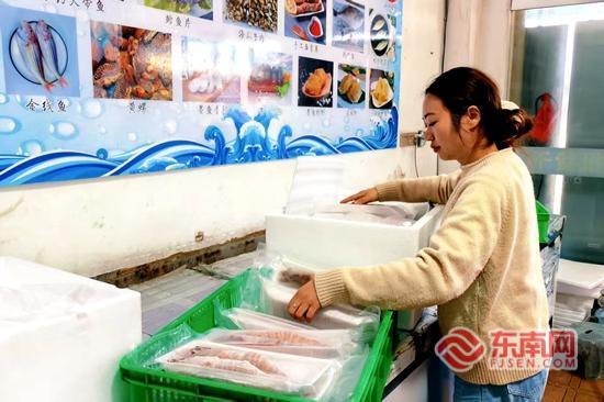 吴艺玲正在打包海鲜发往全国各地 与兴海大道不同的是,“旅游电商一条街”却是一派热闹的景象。来自东山澳角出产的小青龙、斑节虾、鳗鱼等优质海鲜,经电商从业者们精心打包、快速发货,赶在春节前夕奔赴全国各地,成为千家万户年夜饭桌上的珍馐美味。 跟随父亲深耕海鲜电商行业近十年的海集鲜水产负责人吴艺玲,也迎来她一年生意的旺季。在吴艺玲的店铺里,她跟工人们一同忙碌着,打包、封装、搬运、发货,一气呵成。依托澳角产地直供的优势,以及不断升级的冷链物流,如今她的店铺日均发货量最高可达数百单,年营收连年稳步增长。吴艺玲的父亲还现场展示了今年的畅销品——一只净重200克左右的精品斑节虾。 吴艺玲表示,近年来当地旅游客流持续增加,有效带动了海鲜及干货销量提升。原先以生鲜邮寄为主的业务模式,如今也拓展出丰富的干货品类,销路越走越宽。 从渔港码头的鲜活烟火,到民宿街巷的悠闲时光,再到电商一线的繁忙订单,澳角村用一湾碧海、一味海鲜、一份年味,打破了旅游淡季的沉寂。新春将至,这座面朝大海的小渔村,正以最地道的海味,迎接每一份奔赴而来的欢喜,也将团圆的鲜香与美好,一同寄往祖国各地。 |