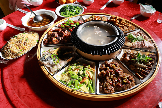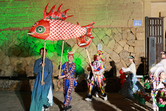 伴着表演,新春家宴也必不可少。一桌桌闽南特色宴席摆开:炒米粉寓意前程似锦,八宝饭象征生活甜美,软糯“水龙圆”更是地道风味……各色菜肴满足了游客们的味蕾。“高山流水”敬酒仪式将气氛推向高潮——竹筒相连,家酿米酒潺潺流下,接过这碗酒便接住了连绵福气。 在欢声笑语中,古老民俗与现代节庆氛围完美交融,幸福流淌在每个人的心头。 |