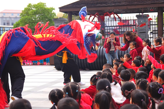 非遗传承,始于认知。活动伊始,幼儿园教师化身“非遗文化讲解员”,率先带领全体小朋友和家长开展舞狮故事讲解活动。教师结合长泰世美鹤阳堂醒狮的传承历史,用生动易懂的语言讲解醒狮的起源、狮头造型的民俗寓意、鼓点节奏的文化内涵,将抽象的非遗文化转化为可听可感的知识,让孩子们在倾听中了解本土非遗的魅力。 “我们希望通过讲解先行,让孩子们带着认知去看表演,这样非遗才能真正走进他们心里。”长泰区第三实验幼儿园园长蔡金莲表示,“今天的活动只是一个开始,今后我们将继续探索更多形式,让本土非遗在校园里活起来、传下去。” 狮舞献瑞,技艺传情。讲解结束后,激昂的锣鼓声正式奏响,长泰世美鹤阳堂醒狮队的队员们身着彩衣,操控着色彩鲜艳的醒狮灵动登场。醒狮时而跳跃腾挪、时而眨眼摆头,时而俯身“采青”,每一个动作都精准娴熟,将非遗技艺的匠心与韵味演绎得惟妙惟肖。孩子们目不转睛,不时跟着鼓点拍手欢呼,家长们纷纷用镜头记录精彩瞬间。 沉浸式体验,让非遗“活”起来。在醒狮队传承人的指导下,家长们带着孩子近距离触摸醒狮、亲手体验操控狮头的乐趣,模仿醒狮摇头摆尾的动作。孩子们牵着家长的手,跟着鼓点节奏轻轻晃动狮头,在欢声笑语中感受醒狮民俗的魅力。 “看到孩子们这么喜欢,我们特别高兴。”长泰世美鹤阳堂馆长杨万生说,“非遗传承就是要从娃娃抓起,今天孩子们不光看,还能亲手摸一摸、试一试,这种体验会在他们心里留下深刻的印象。希望以后有更多机会走进校园,让更多孩子了解咱们长泰的本土文化。” 此次非遗进校园活动,是长泰区第三幼儿园落实“文化润童心,传承伴成长”教育理念的生动实践。活动以“讲解+表演+体验”的模式,让非遗变成孩子们可以触摸、感受、体验的鲜活文化元素,既丰富了校园文化生活,又搭建了家园社协同育人的良好平台,为新学期的幼儿园教育工作奠定了温暖的文化基础。(陈宇航 文/图) |