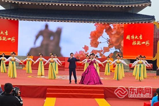 东南网漳州4月3日讯(钟舒云 文/图)4月3日,以“开漳大吉、根亲四海”为主题的第十届开漳圣王文化节在漳州云霄县将军山景区开幕,由漳州市人民政府主办,中共云霄县委、云霄县人民政府承办。 鼓声阵阵,春日踏歌,“礼赞开漳圣王、缅怀开漳先贤”文化活动款款走来,古郡云霄精彩不断,将军山下好戏连台。大型乐舞《开漳圣王颂》气势恢弘,通过《忠毅·山河志》《威惠·安民赋》《和融·千秋颂》三个篇章情景再现,回望波澜壮阔的开漳历史,讴歌开漳先贤的卓越功勋,铺展政通人和的时代新卷,赓续同根同源、四海归心的文化基因。城市推介片《古郡新颜 活力云霄》融古汇今,向八方来客递上云霄名片;迎宾表演《福兮》古韵十足,彰显云霄人文之美;本届文化节主题曲《元光》首发首唱,以歌声礼赞开漳伟业、唱响美好生活。