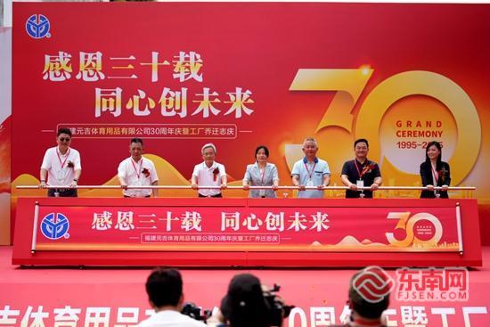 东南网漳州4月11日讯(卢丽娟 通讯员 郑晓梅 欧月娥 文/图)春风送暖,龙津潮涌。今日,福建元吉体育用品有限公司迎来三十周年华诞暨新厂乔迁;今年,漳州长泰撤县设区五周年。而立之年“遇上”砥砺五载,两个时间节点交汇,勾勒出漳州长泰持续优化营商环境、深化两岸融合发展,让台商台胞愿意来、留得住、发展好的生动图景。