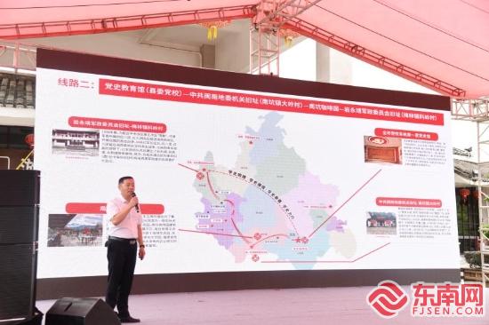 东南网漳州6月23日讯(本网记者 李姗姗 通讯员 张梦帆 文/图)6月23日,“土楼故里 红色记忆”主题精品线路在南靖土楼景区正式启动,活动在“两个一百年”奋斗目标历史交汇的关键节点举办,旨在发扬红色传统,传承红色基因,促进南靖土楼红色基因的保护与传承,扩大旅游产业链条。 “土楼故里 红色记忆”主题精品线路结合“一轴两翼”党史教育基地教学点,内容丰富,分为A线、B线和C线。其中,A线为:“助我义师”牌匾(怀远楼)—简大狮纪念馆—阙广昌牺牲地(云水谣大榕树)—陈木树烈士纪念碑(五更寮)—李德安攻打下坂反动民团(裕昌楼)—侨史馆(塔下);B线为:党史教育馆(县委党校)—中共闽南地委机关旧址(南坑镇大岭村)—南坑咖啡园—岩永靖军政委员会旧址(梅林镇科岭村);C线为:党史教育馆(县委党校)—漳州战役主战场遗址(龙山镇南坪村十字岭)—仙岭乡苏维埃政府旧址(奎洋镇仙岭村)。