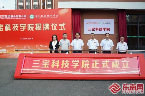 东南网漳州10月8日讯(本网记者 李姗姗 通讯员 甘静玲 陈妍 文 / 雷滨 图)近日,漳州职业技术学院举行政校企签约暨揭牌仪式,漳州冠军制造产业学院、三宝科技学院正式落户漳州职业技术学院。据悉,此举将为漳州市装备制造和钢铁新材料千亿产业集群的高质量新发展输送更多高素质技术技能人才,为漳州建设现代化滨海城市做出新的贡献。 漳州冠军制造产业学院由漳州市工信局、国家级制造业单项冠军企业龙轴集团、省级制造业单项冠军企业神悦集团与漳州职业技术学院共同组建。该产业学院聚合政校企各方力量,扎根于漳州装备制造产业一线,紧密围绕高端装备制造产业集群重大需求,建设集人才培养培训、职业技能培训鉴定、技术开发、成果转化、生产测试、科技服务为一体的产业学院平台,开展漳州高端装备制造产业链前沿技术研究与关键共性技术攻关,实现成果转化和工程应用。